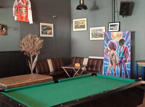 Uno de los puntos fuertes de este bar es su buena oferta de espacios. Cuenta con dos terrazas cubiertas donde puedes descansar cómodamente. Una vez dentro tienes una amplia barra y una zona con mesas altas y taburetes. Y por si todo esto fuera poco, disponen de un salón multiuso donde hay zona de juegos (billar, futbolín, dardos…).