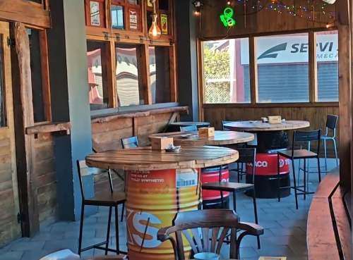 No falta detalle, todos los espacios están decorados con ambiente racing, y dedicados al mundo del motor. Además cuentan con un expositor de artículos del motoclub local Moteros Norteños